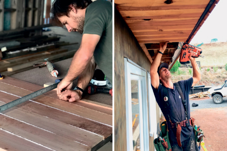 Alice commuted to Hamilton daily for work, and Luke worked away from home for weeks at a time. Luke was able to give up paid work on October 15, 2017, to tackle the build. While part-time on the tools, Alice continued to work in Hamilton and later started her own company, Rubix Architecture.