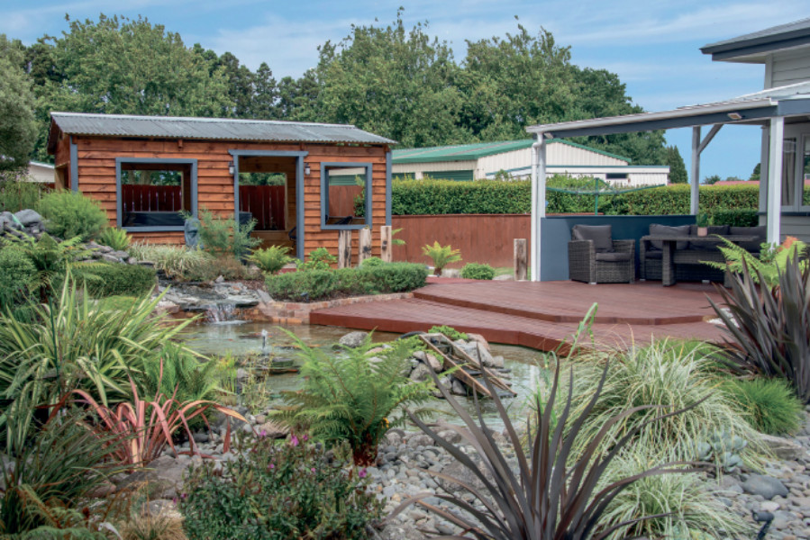 Tucked down a right of way, off a typical urban street in Matamata, Chanelle and Chris Wilson have created an eye-catching and tranquil oasis on their property which is enjoyed by their family and friends.