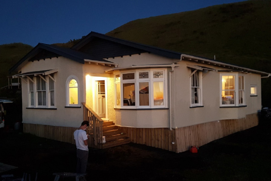 But a Christmas Eve search on Trade Me changed everything. “We stumbled across relocatable homes and found a 1930s stucco California bungalow-style home for $29,000.”