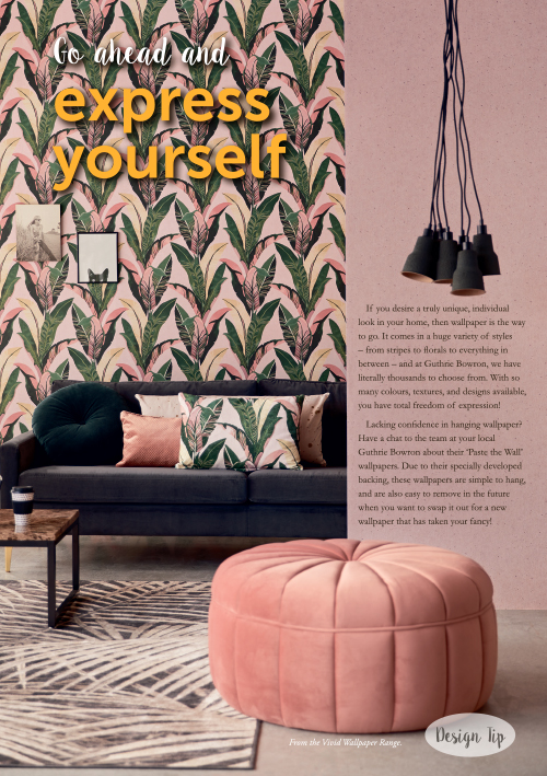 Lacking confidence in hanging wallpaper? Have a chat to the team at your local Guthrie Bowron about their ‘Paste the Wall’ wallpapers. Due to their specially developed backing, these wallpapers are simple to hang, and are also easy to remove in the future when you want to swap it out for a new wallpaper that has taken your fancy!