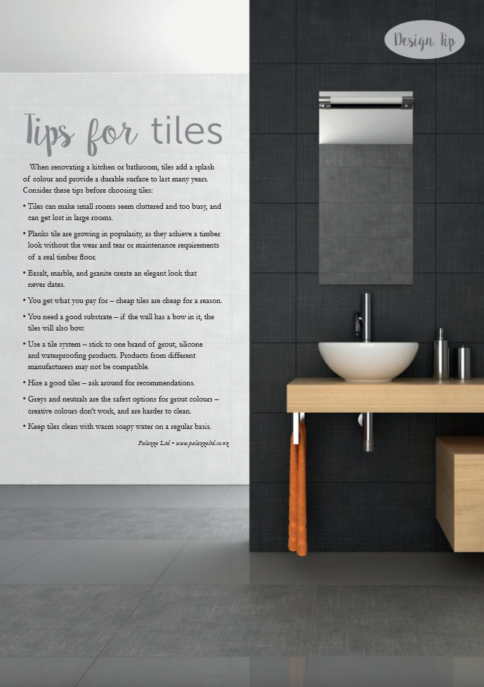 When renovating a kitchen or bathroom, tiles add a splash of colour and provide a durable surface to last many years.